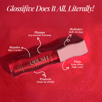 Glossifive is built for maximum impact with minimum effort. This 5-in-1 multifunctional gloss hydrates, tints, protects, repairs, and delivers a subtle icy plump — all while giving lips a high-shine, editorial finish